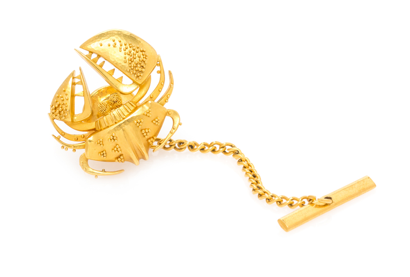 An 18 Karat Yellow Gold Crab Motif Tie Tack, John Paul Miller,