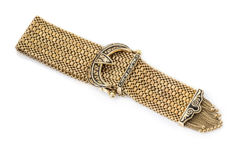 A 14 Karat Yellow Gold and Enamel Belt Bracelet,