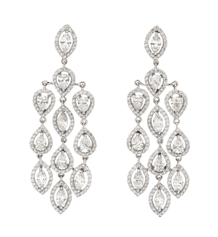 A Pair of White Gold and Diamond Chandelier Earrings, Lugano,