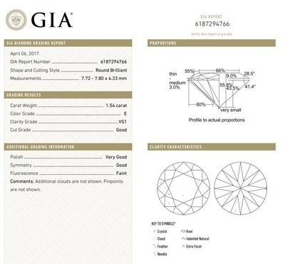 A 1.54 Carat Round Brilliant Cut Diamond,