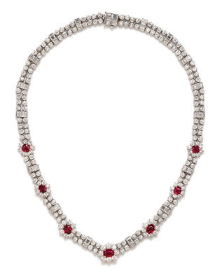 A Platinum, Burmese Ruby and Diamond Necklace,