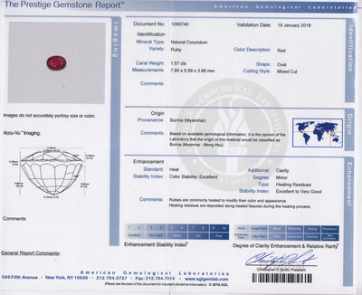 containing one oval mixed cut Burmese ruby weighing 1.57 carats, six oval and round mixed cut rubies weighing approximately 6.11 carats total, 200 round brilliant cut diamonds weighing approximately 19.43 carats total, and 72 baguette cut diamonds weighing approximately 5.54 carats total.Stamp: PT950.Accompanied by an American Gemological Laboratories ruby identification and origin certificate number 1089740, dated January 18, 2018, stating Mineral Type: Natural Corundum, Variety: Ruby, Origin: Burma (Myanmar-Mong Hsu), Enhancement: Standard Heat, Minor Clarity.