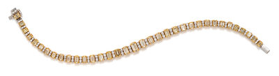 An 18 Karat Bicolor Gold, Colored Diamond and Diamond Line Bracelet,
