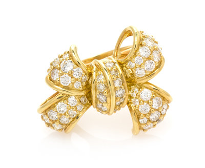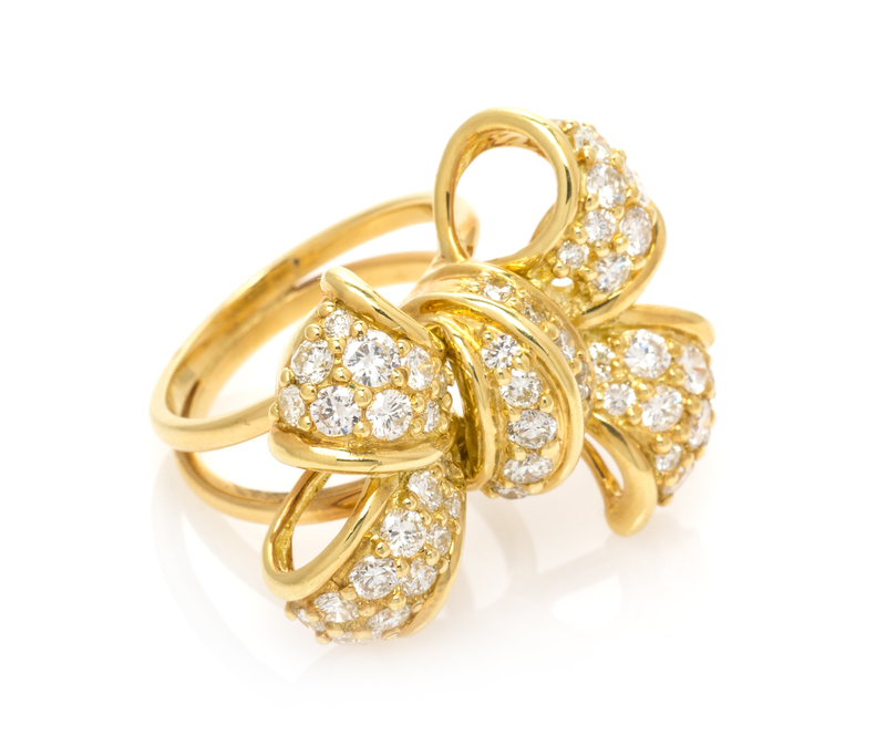 An 18 Karat Yellow Gold and Diamond Bow Motif Ring, Jose Hess,