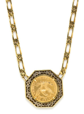 An 18 Karat Yellow Gold, US $10 Dollar Liberty Coin and Diamond Necklace, La Triomphe,