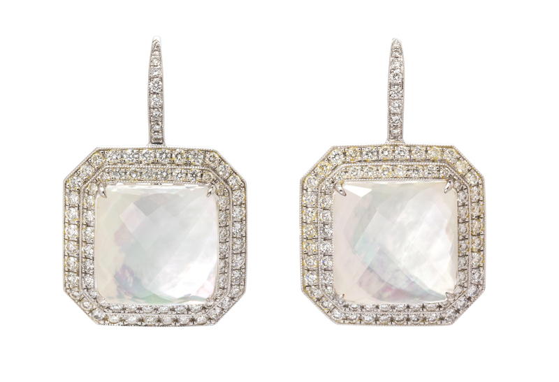 A Pair of 18 Karat White Gold, Rock Crystal, Mother-of-Pearl and Diamond Earrings,