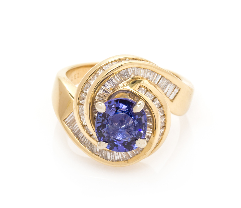A 14 Karat Yellow Gold, Tanzanite and Diamond Ring,
