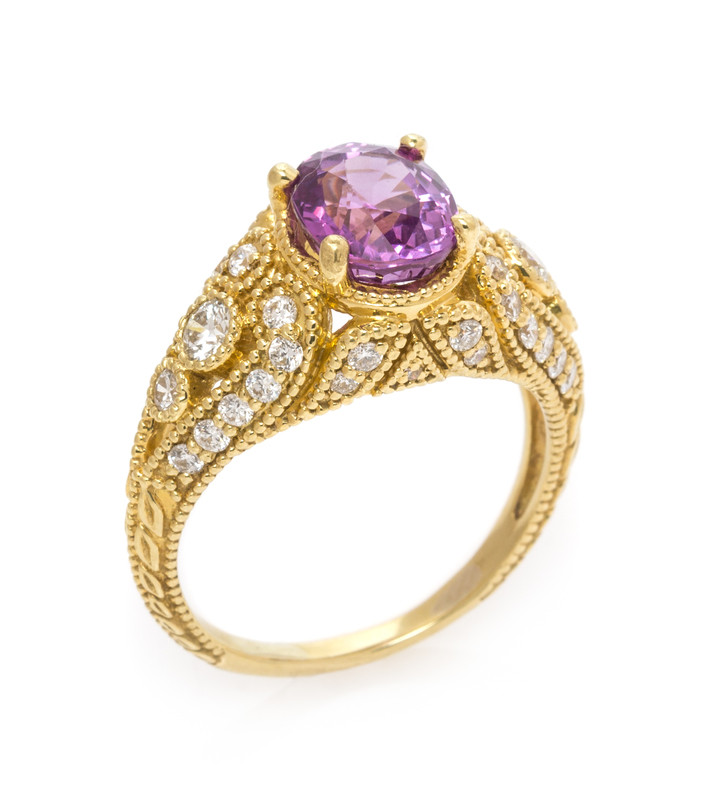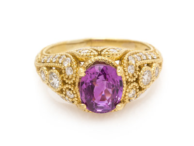An 18 Karat Yellow Gold, Purple-Pink Ceylon Sapphire and Diamond Ring,