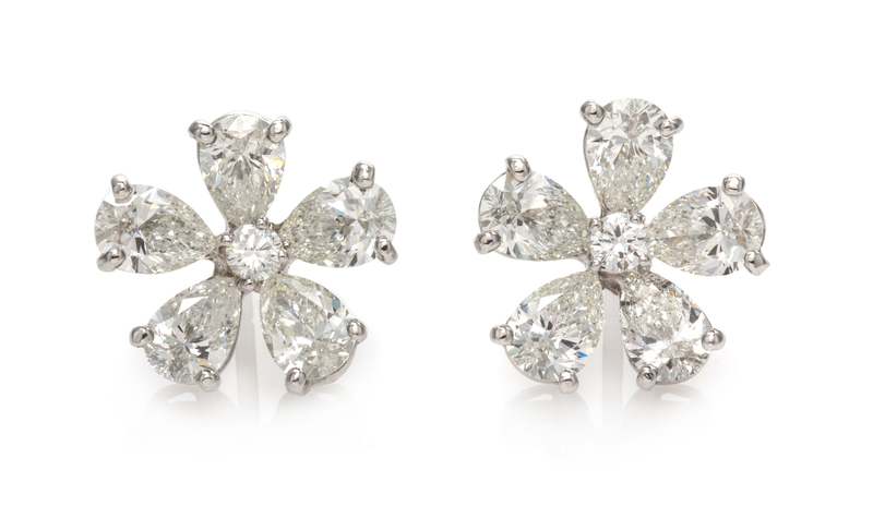 containing 10 pear shape brilliant cut diamonds weighing approximately 2.99 carats total and two round brilliant cut diamonds weighing approximately 0.12 carat total.Stamp: 18K.