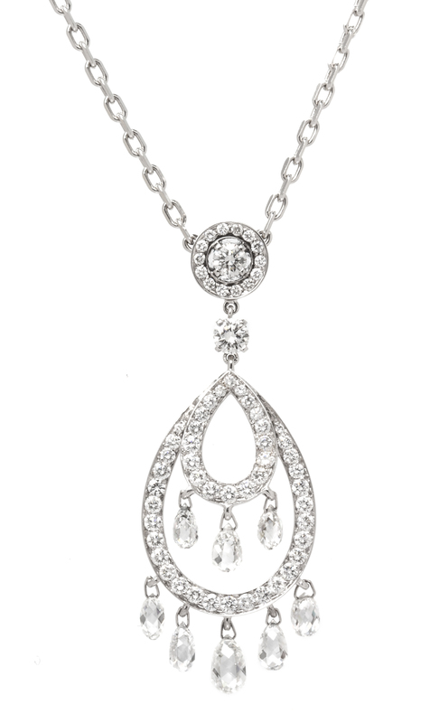 containing eight briolette cut diamonds weighing approximately 2.95 carats total and 61 round brilliant cut diamonds weighing approximately 1.25 carats total, with an adjustable length anchor link chain.Stamp: OR750 E16589 BOUCHERON (French hallmark and maker's mark).Accompanied by an inner case and outer box signed BOUCHERON.