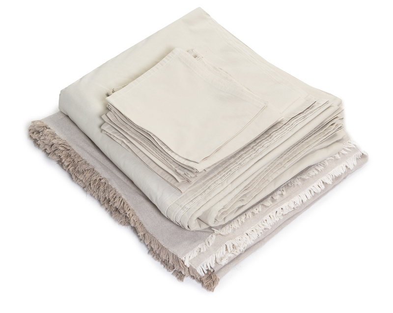 comprising 8 table cloths, 53 napkins and 6 placemats, the table cloths and napkins of various sizes; 67 items total.
