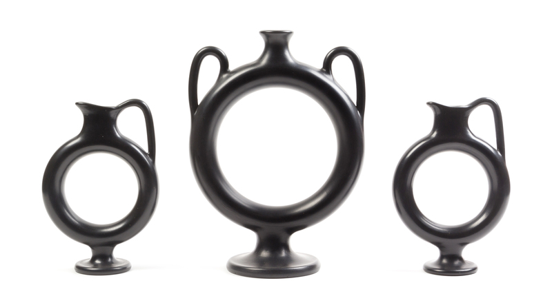 A Group of Three Italian Black-Fired Ewers