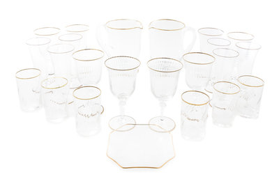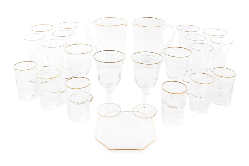 A Venetian Gilt Decorated Glass Stemware Service