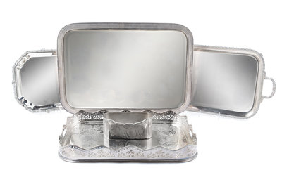 comprising an example by Gorham Mfg. Co.; a handled British example; an example of shaped square form having a gadroon edge with maker's mark LCF; an unmarked example and a caddy marked William Sheffield Collection.