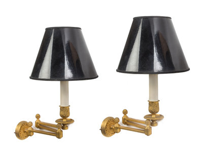 A Pair of Empire Style Gilt Metal Swing-Arm Sconces