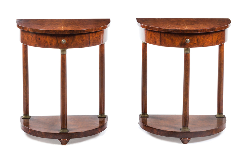 A Pair of Empire Style Burlwood Console Tables
