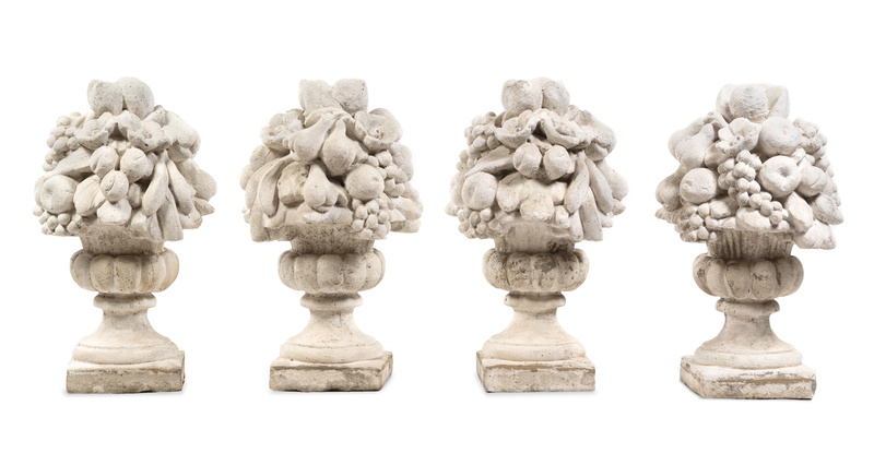 A Set of Four Cast Stone Models of Fruit-Filled Urns