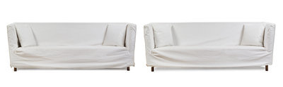 A Pair of Flexform Twill-Slipcovered Sofas