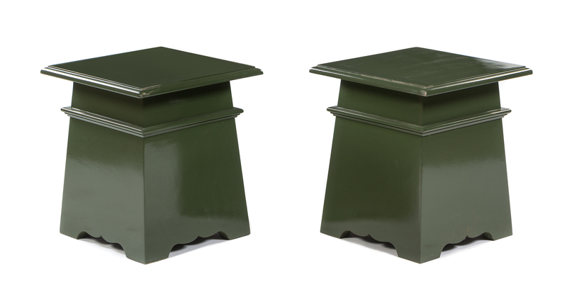 each having a square top above the conforming tapering frame, raised on bracket feet.