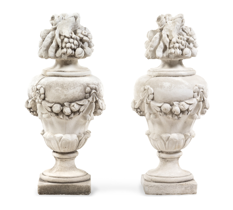 A Pair of Cast Stone Models of Fruit-Filled Urns