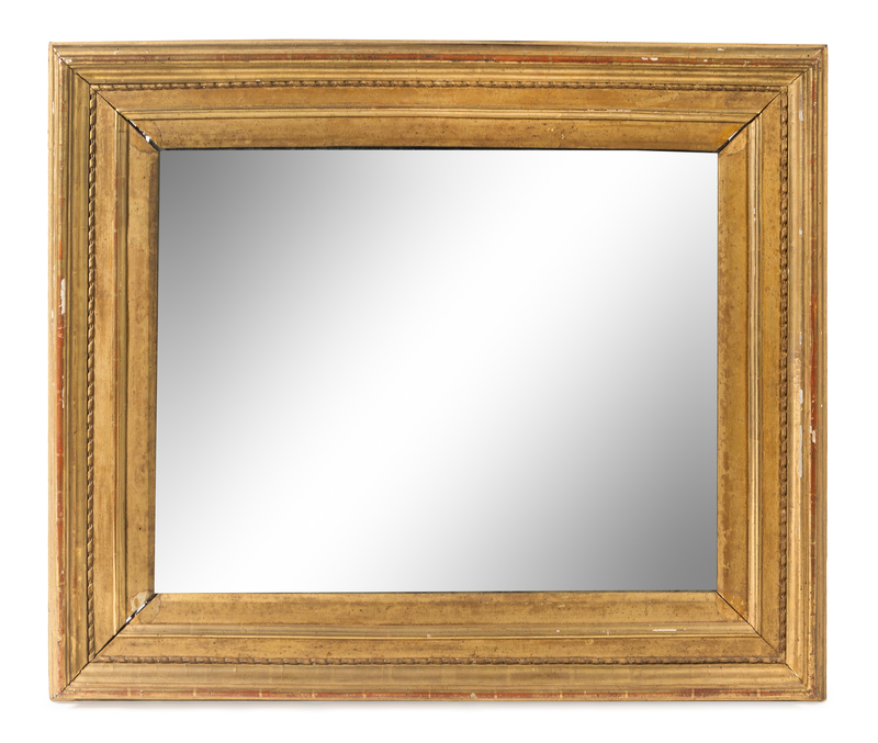 of horizontal rectangular form, the molded frame with a band of carved ribbon decoration.