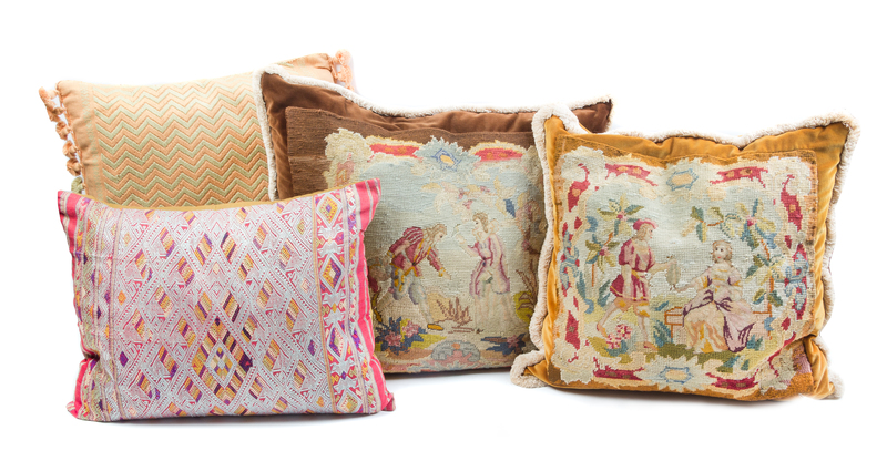 comprising two needlepoint examples, an example made from a Laotian woven tapestry and one other.