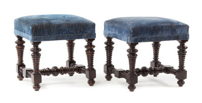 A Pair of Portuguese Baroque Style Walnut Stools