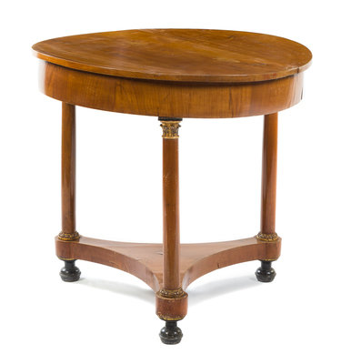 having a circular top above the plain frieze set on columnar supports with acanthus carved capitals ending in a concave tripartite base raised on bun feet.
