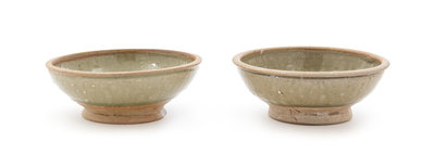A Pair of Burmese Celadon Glazed Pottery Bowls
