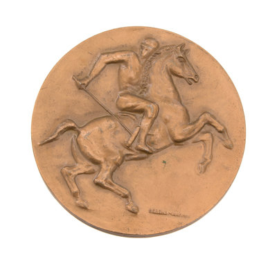 Polo Medallion, having a polo player on pony on face and polo mallets on verso