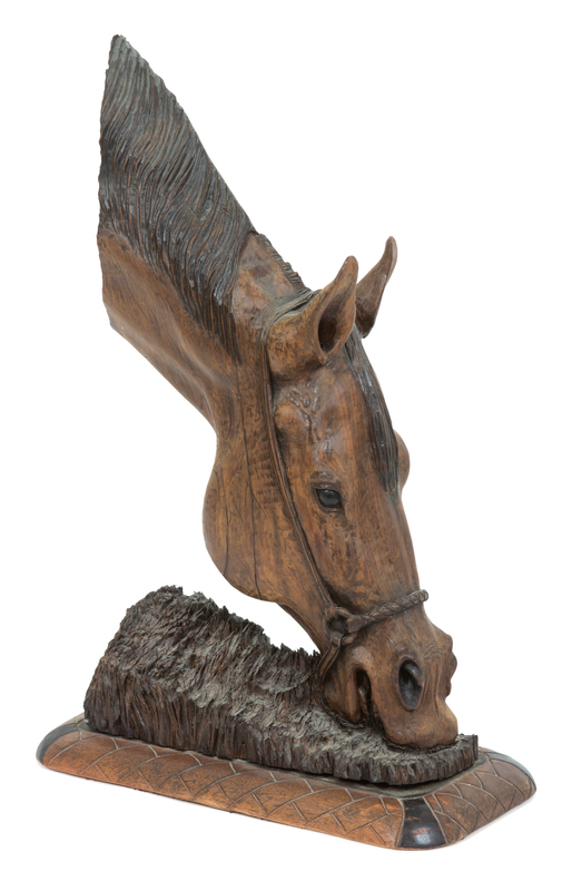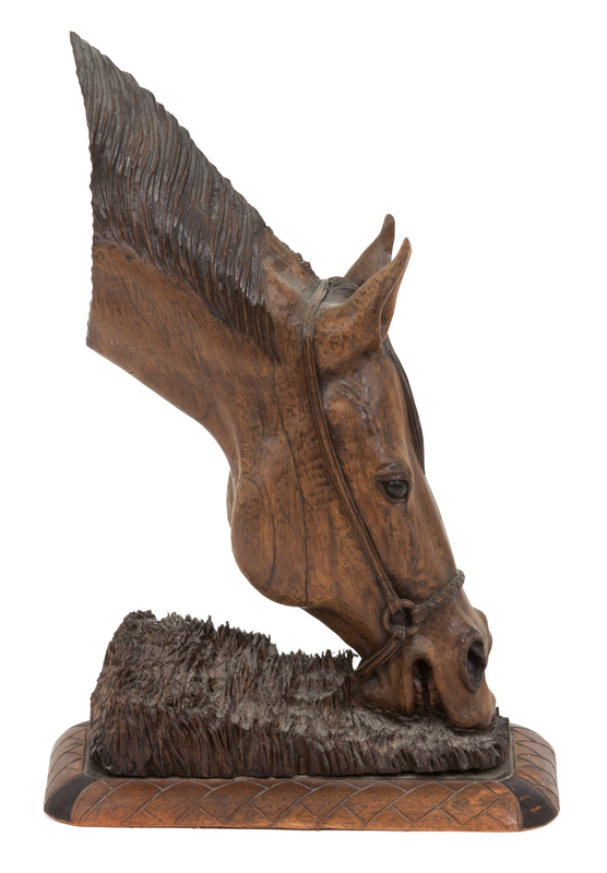 A Brazilian Carved Wood Sculpture of A Horse Feeding