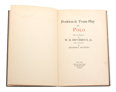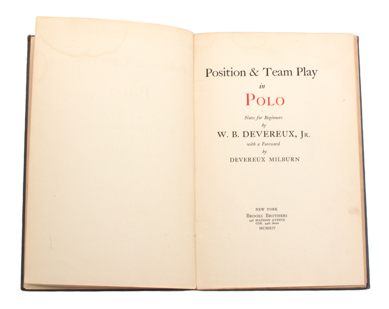 comprising of Position & Team Play in Polo by W.B. Devereux Jr., Selection and Training of the Polo Pony by Grove Cullum, Into Polo by Carlton Beal, and A Memoir by John George Milburn, Jr.