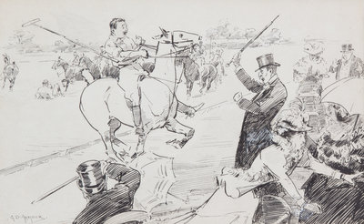 Polo Cartoon for Punch, together with the lithograph cartoon and caption