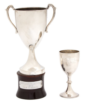 one by Walker & Hall, Sheffield 1898, inscribed The Hurlingham Club/Ladies Polo Match/1924..., the other Italian .800 silver with a plate on the wood base, Campionati Italiani Polo/1972...