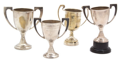 A Group of Four Diminutive Silver Plate Trophy Cups