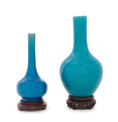 Two Chinese Turquoise Glazed Porcelain Bottle Vases