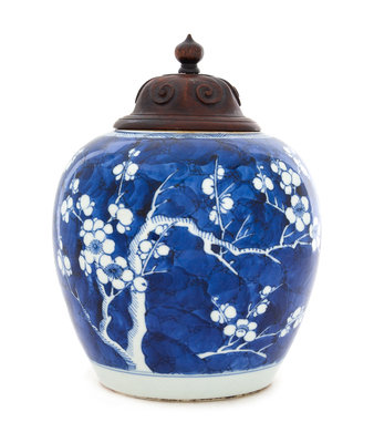 A Chinese Blue and White Porcelain "Crackled Ice and Prunus" Ginger Jar