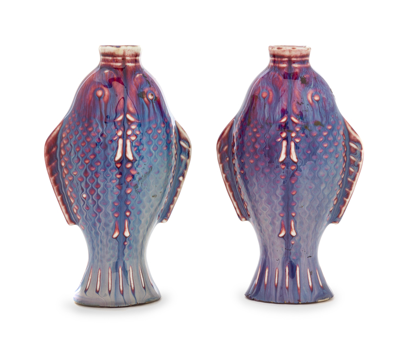 A Pair of Chinese Flambe Porcelain Fish-Form Vases