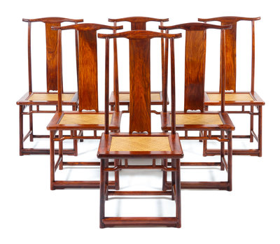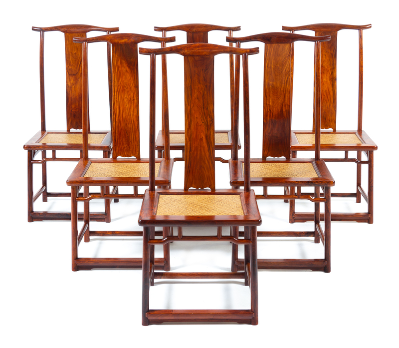 A Set of Six Chinese Huanghuali Side Chairs, Dengguayi