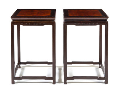 A Pair of Chinese Jichimu and Burlwood Square Corner-Leg Stands, Ji