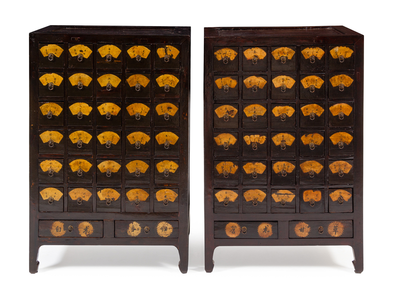 A Pair of Chinese Huanghuali Inset Elmwood Apothecary Cabinets, Yaogui