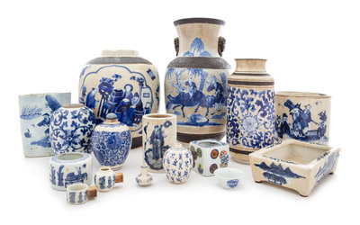 comprising one miniature vase, one rectangular planter, two cups, two bird feeders, two small jars, two ginger jars, two water coupes, two brushpots and two vases.