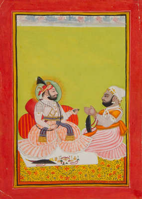 depicting two noble men, gouache on paper.