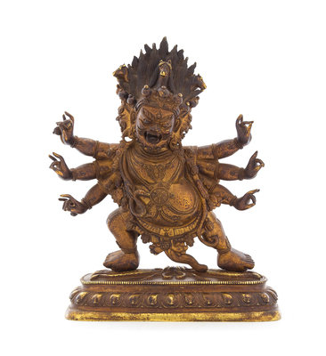 A Sino-Tibetan Gilt Bronze Figure of Mahakala