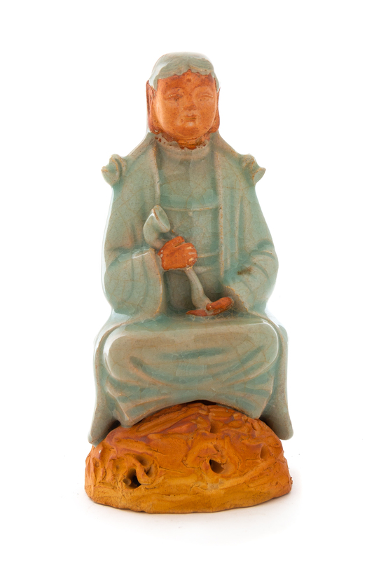 A Celadon Glazed Pottery Figure of Guanyin