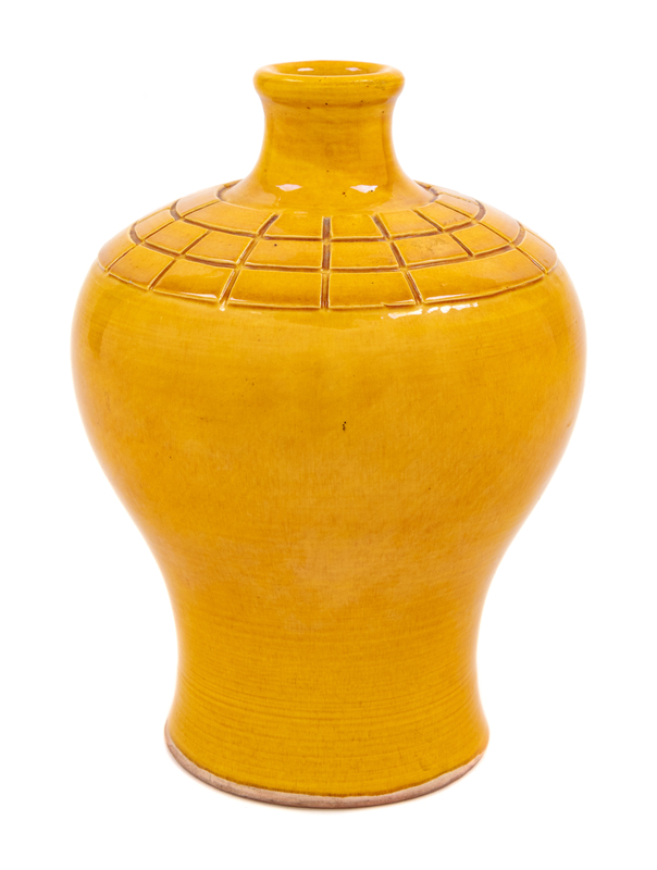 A Carved Yellow Glazed Porcelain Meiping Vase