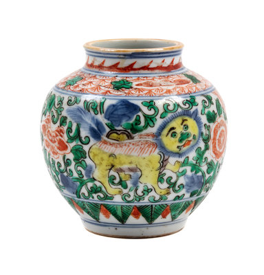 A Small Underglaze Blue and Wucai Porcelain Jar