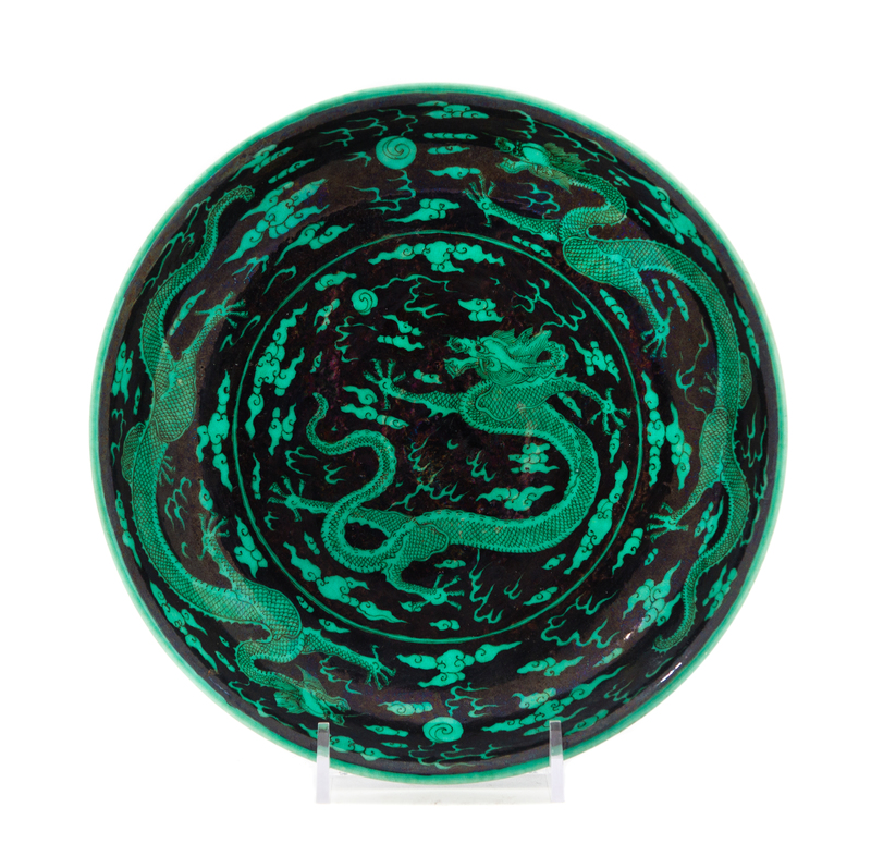 A Black Ground Green Decorated Porcelain 'Dragon' Plate