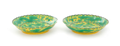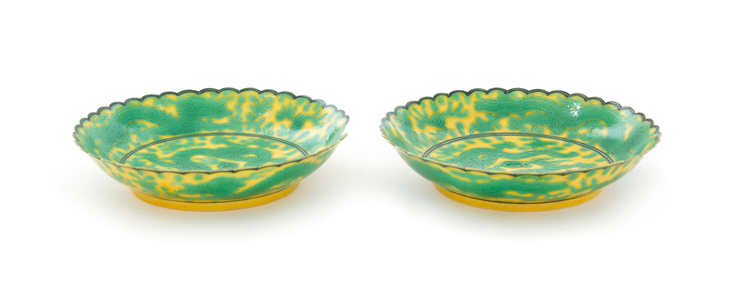 A Pair of Yellow Ground Green Decorated Porcelain 'Dragon' Dishes