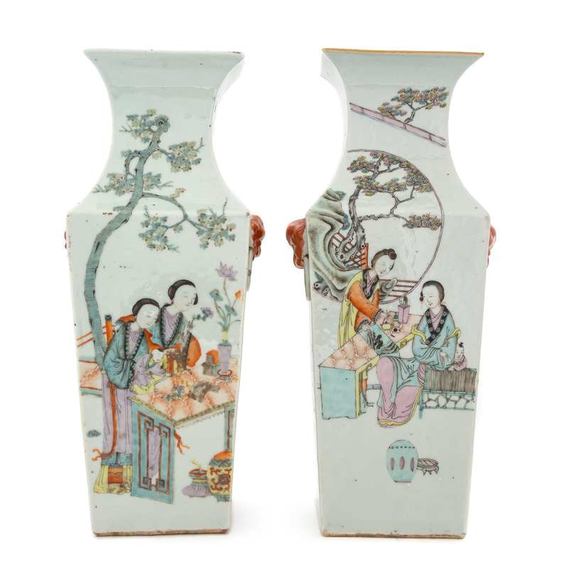 A Pair of Qianjiang Porcelain Square Vases